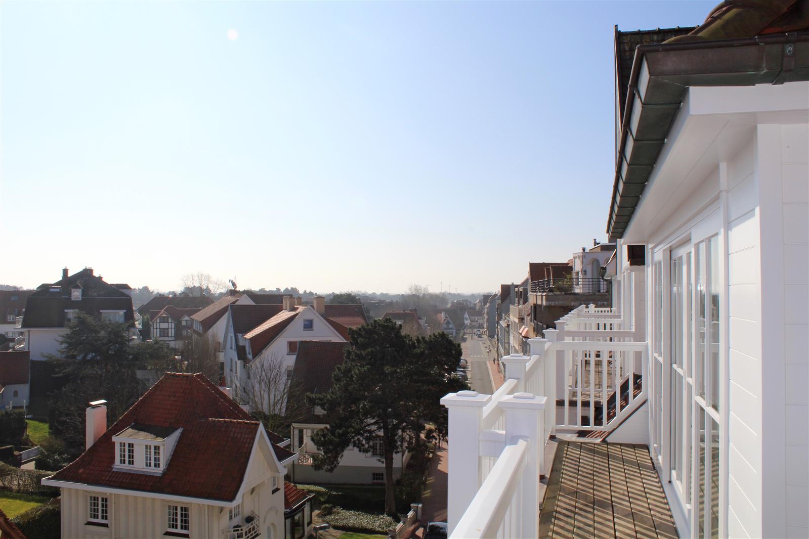 Appartement duplex spacieuse avec vue superbe sur Knokke. 3 chambres à coucher, 3 salles de bains, garage dans l'immeuble.
