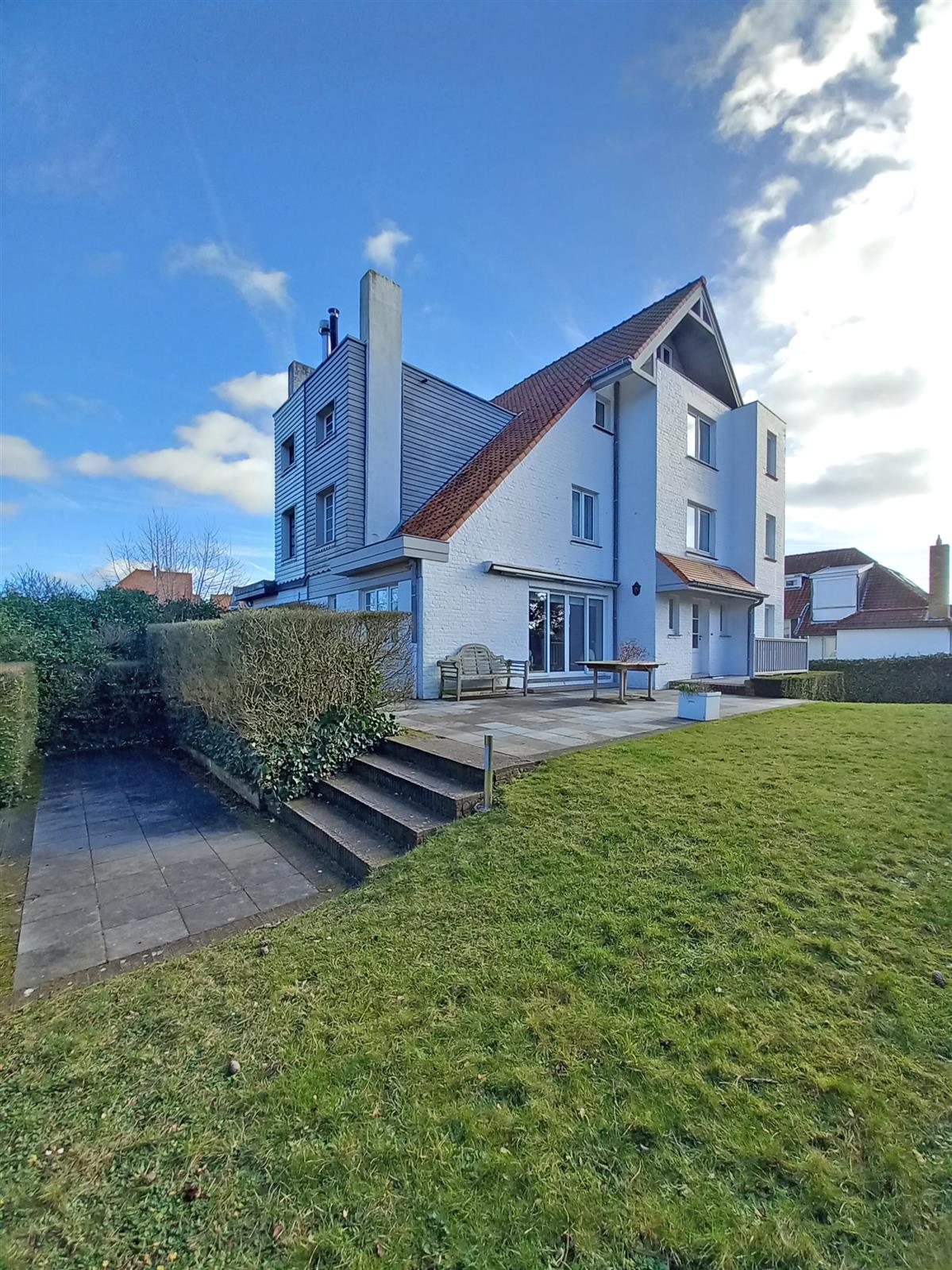 Villa confortable et ensoleillée située dans l'un des nombreux sentiers de Knokke, juste derrière la place Albert. Chaque chambre dispose de sa propre pièce d'eau. Possibilité de garer 3 à 4 voitures.