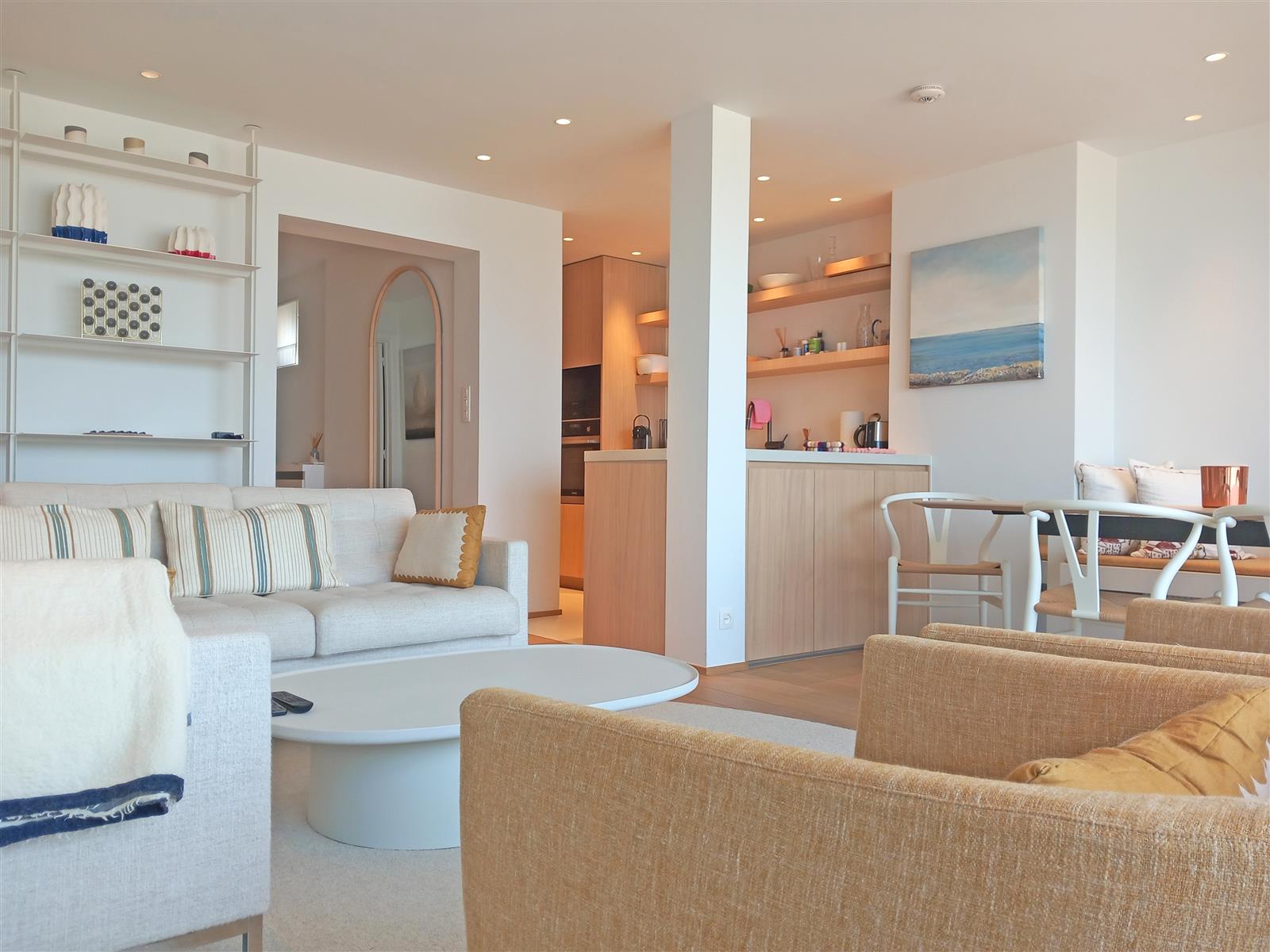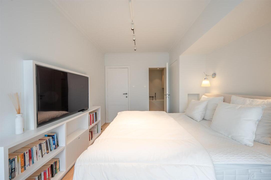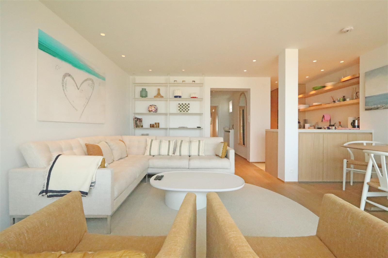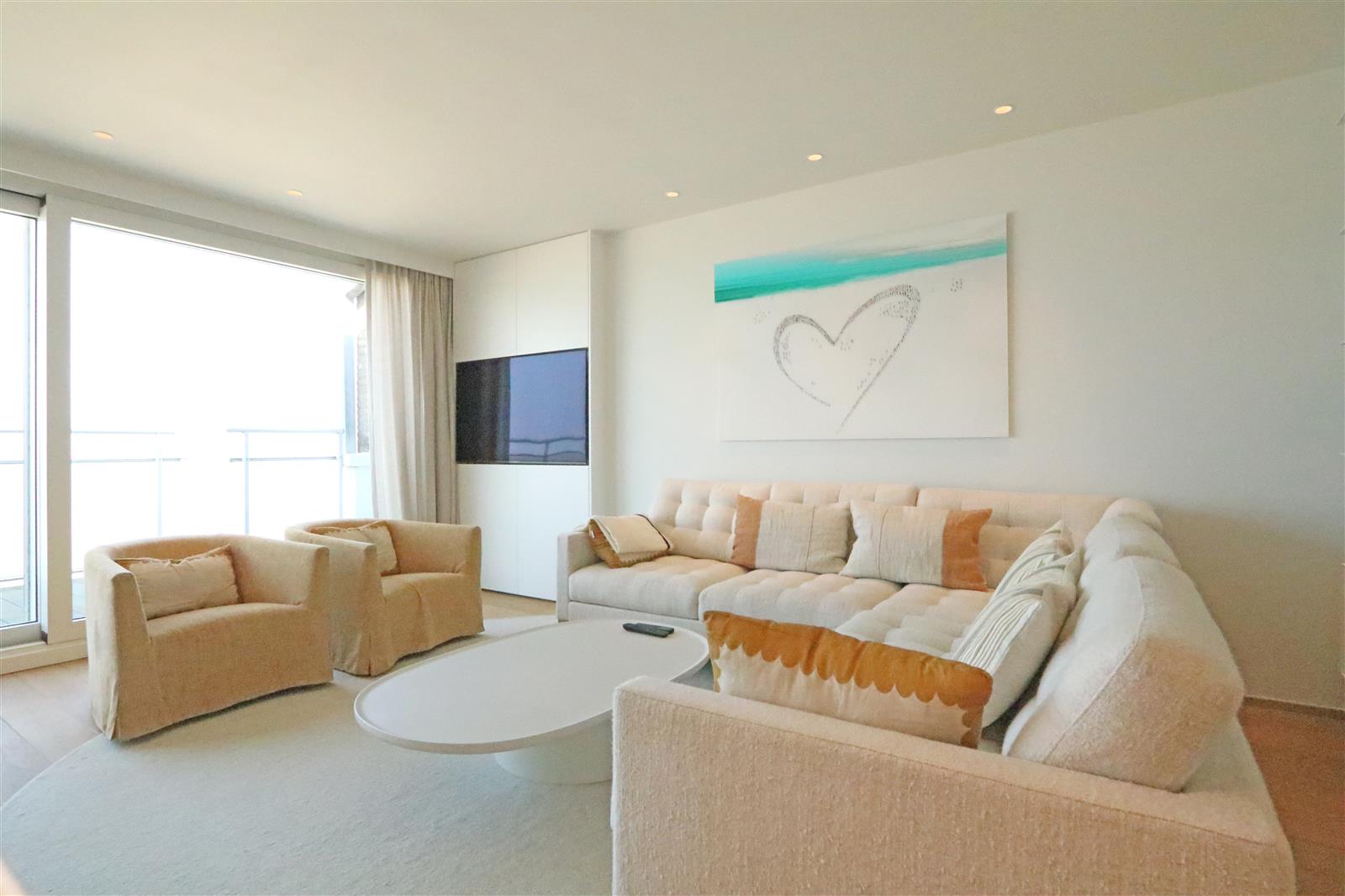 Luxueus afgewerkt appartement met open zicht op zee en een ruim terras aan de voorzijde. Het appartement beschikt een ruime leefruimte met open keuken en toegang tot het terras. Verder zijn er drie slaapkamer, elk met eigen badkamer : De indeling omvat een dubbele slaapkamer met en-suite badkamer voorzien van een ligbad met douchestang, een kinderkamer met twee stapelbedden en een douchekamer, en een derde slaapkamer met twijfelaar en eigen douchekamer. Een private staanplaats is inbegrepen.